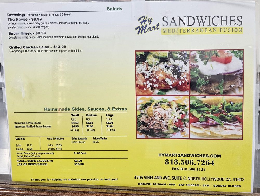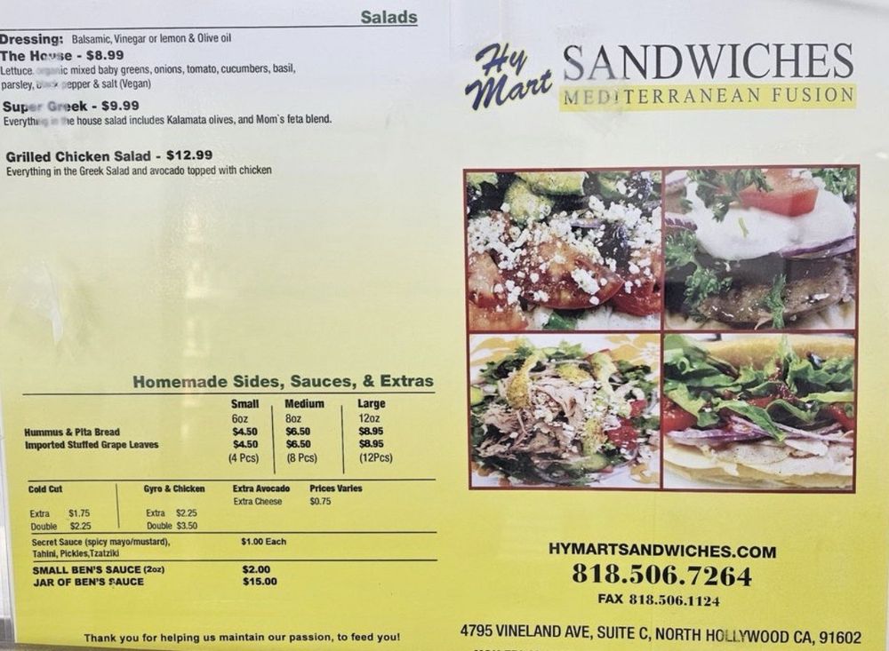 Welcome to Hy Mart Sandwiches, a delightful eatery tucked away in North Hollywood, where deliciousness meets heart. This family-owned gem specializes in Mediterranean wraps and sandwiches, each crafted with care and featuring bold, fresh flavors.