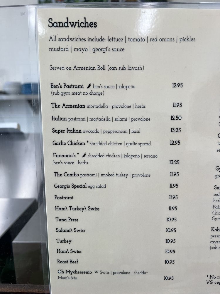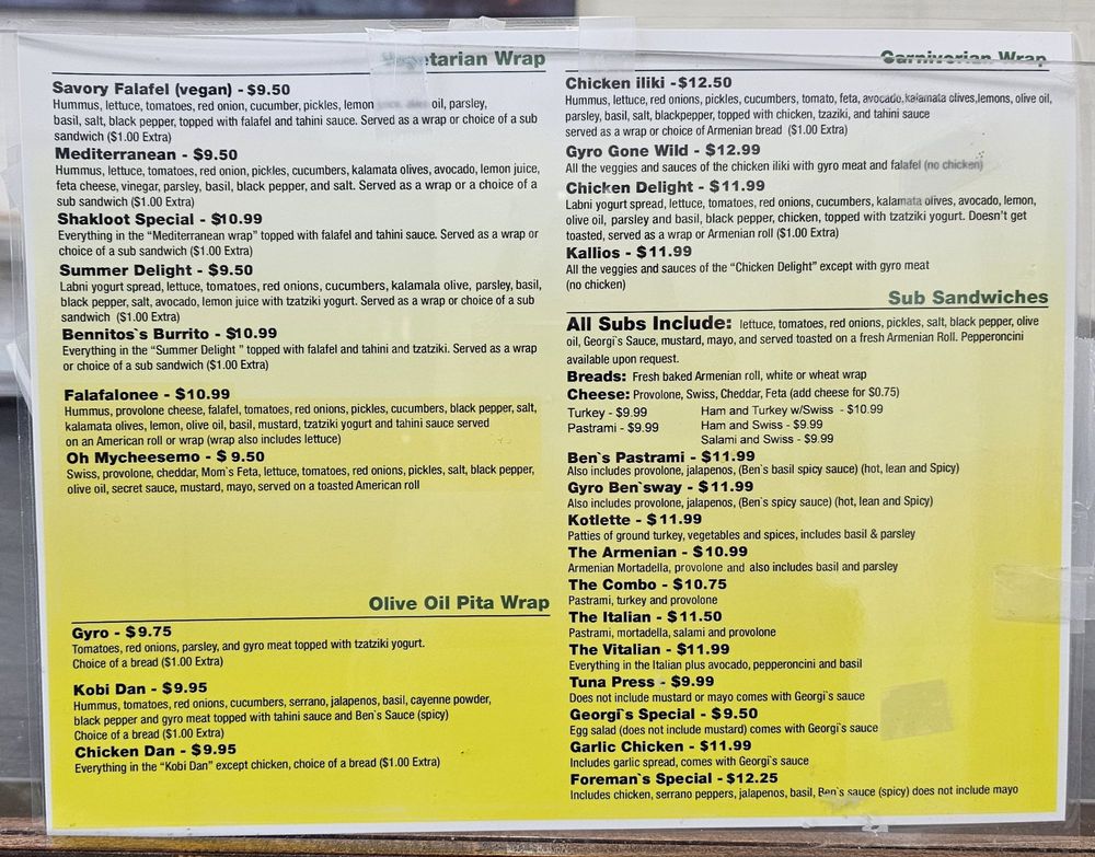 - Signature Offerings: Indulge in their sub sandwiches like the Ben's Pastrami and Garlic Chicken, or savor the robust Italian and Armenian sandwiches, all meticulously prepared.